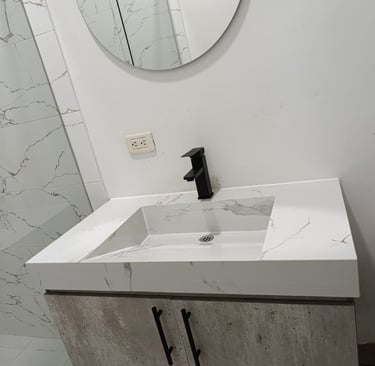 Mesones en mármol hechos a medida, resaltando cada veta natural para un toque exclusivo y duradero en tu cocina.